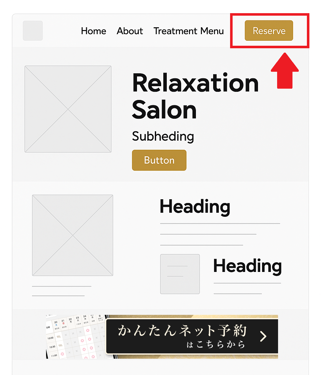 店舗ホームページのメニューバーに予約ボタンがない場合
